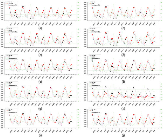 Nine models were selected for comparison with the proposed PLC-SVM, of which their information is summarized in Table 1 with descriptions of the corresponding hyperparameters. As described above, the PLC-SVM model is essentially based on the methodology of the SVM model; thus, the most closely related models are chosen for comparison. For convenience, the Gaussian kernel (27) is selected for SVM and LSSVM, and the rational quadratic kernel is selected for GPR, as suggested in [73]. On the other hand, the PLC-SVM model has a partially linear structure, and the linear auto-regressive model is also used as the baseline model for comparison.