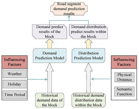 Based on the above pre-processed data, the parking demand prediction model of this paper is constructed. The main structure is shown in Figure 1, and the main body is divided into two parts: the demand forecast of the whole block and the demand distribution forecast within the block.