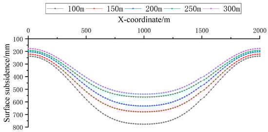 The maximum surface subsidence values with different filling face sizes.