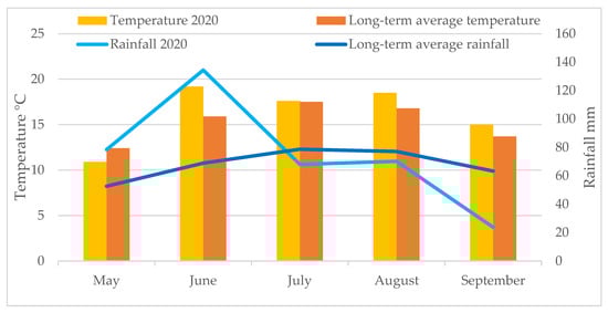 Average temperature and rainfall sum during the beetroots vegetation period (Babtai, 2020).