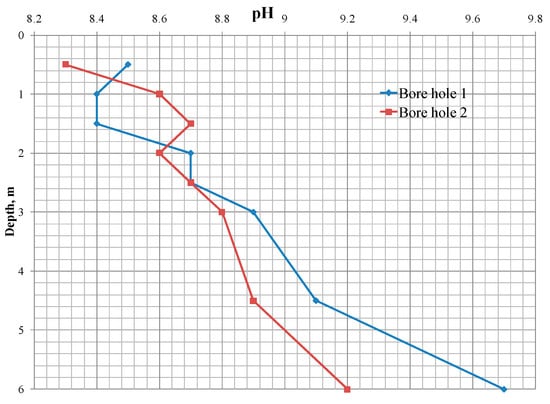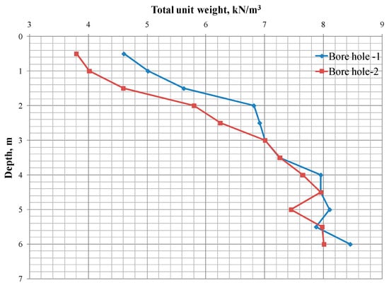 In the Mavallipura landfill, the in-situ method of measuring the unit weight by replacing the waste with calibrated gravel was used. The weight of waste removed from a 0.5–1.0 m length of the borehole was measured and the volume of the material was evaluated by backfilling the 0.5–1.0 m interval with gravel of known unit weight. The unit weight of MSW is expressed as a kN/m3. Figure 10 shows the unit-weight profile with depths ranging from a low unit weight of 3.8 kN/m3 near the surface and the highest value of approximately 8.4 kN/m3 at a depth of 6 m. The unit weight tended to increase with depth.