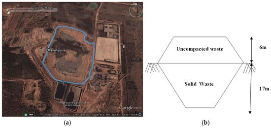 Mavallipura landfill: (a) perimeter of dumpsite; (b) typical landfill sketch.
