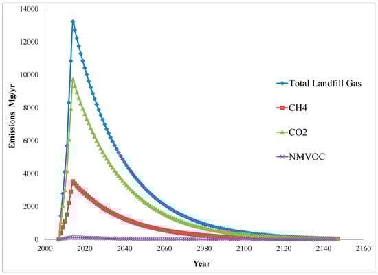Estimated amount of gas emission with time from Mavallipura landfill site.
