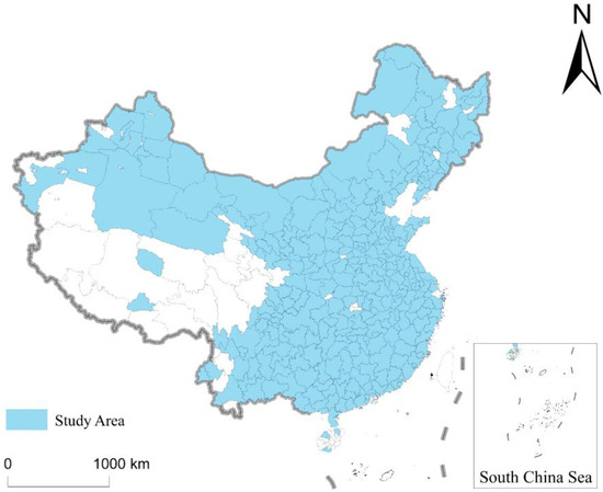 China is the largest developing country in the world and also the country with the largest energy consumption [78]. China’s implementation of an energy transition strategy has an important impact on global sustainable development [79]. Choosing China as the object and exploring the spatiotemporal characteristics of technological innovation in the natural gas industry at the urban level has a strong guiding significance for the development of the global natural gas industry and its strategic role as a transitional energy source during the energy transition. On this basis, 312 cities in China were selected as the study area, excluding cities in Hong Kong, Macao, and Taiwan. The selection of these cities was based on the geographical location linked to the first applicant contained in the patent data. Through a search and analysis of the patent data, it was found that, between 1985 and 2020, a total of 312 cities in China applied for patents related to natural gas technology innovation. These cities are widely distributed in various provinces, accounting for over 90% cities at prefecture level or above in China (Figure 1).