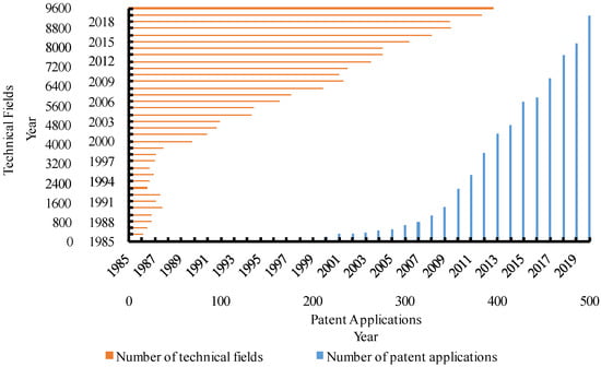 Number of patent applications and technical fields.