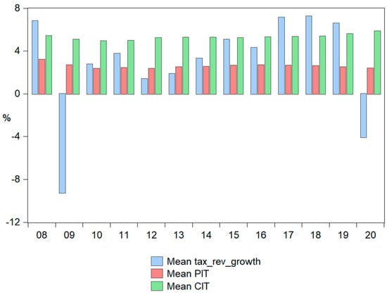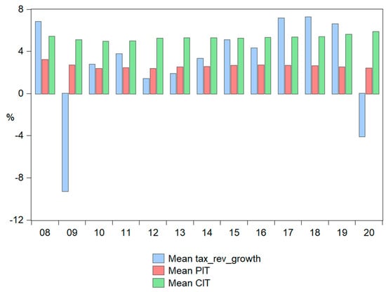 Ref. [39] have proved that a 1% reduction in PIT increases real GDP per capita by 1.4% in the first quarter and up to 1.8% after three quarters. In addition, the same fall in CIT resulted in a rise in real GDP per capita of 0.4% in the first quarter, and 0.6% a year later.