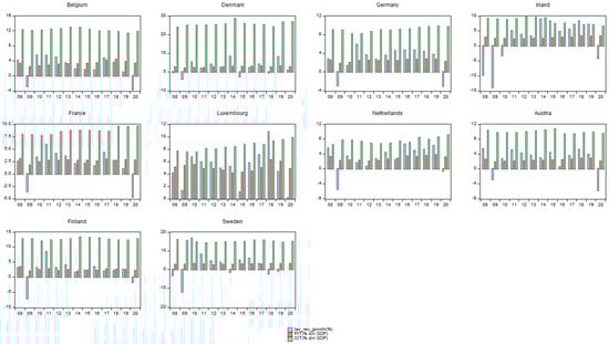 In their study, ref. [47] pointed out the negative effect of direct and indirect taxes on the economic growth of developing countries, and the existence of a positive relationship for developed countries.
