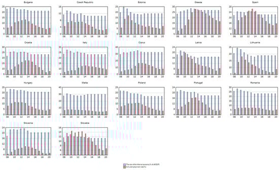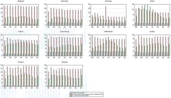 - The size of the informal economy is expressed as a percentage of the official GDP. The data source is the study [74], and the data were taken from the Global Economy platform.