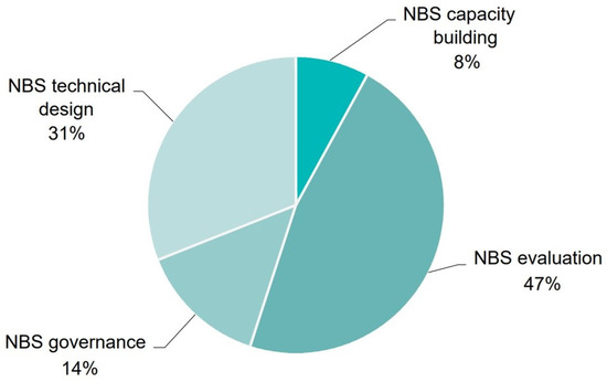 As an emergent field, there is much research to be performed on NbS [91]. Despite drawing increasingly more interest and becoming a subject of research [19,25], many knowledge gaps subsist and have been identified. Kabisch et al. (2016) [1] identify four types of knowledge gaps for NbS: (a) effectiveness; (b)societal relations; (c) design; and (d) implementation. FEBA (2021) [49] identifies the need for data, research, assessment, policy coherence, data and tools that support the integrity of ecosystems and NbS specifically for humanitarian contexts. Assessment is particularly important, as the potential of NbS to deliver benefits has not yet been fully evaluated [8]. Network Nature, a resource for NbS funded by the EC and developed jointly by IUCN, ICLEI Europe, BiodivERsA, Oppla and Steinbeis 2i, launched in 2022 a study that identifies 142 knowledge gaps categorized under 27 broad topics [92]. An online survey by Network Nature (2021) [92] identified 29 unique knowledge and implementation gaps. The study identifies four types of knowledge gaps in NbS related to: (a) technical design, (b) evaluation, (c) governance and (d) capacity building, as illustrated in Figure 1 and Table 1.