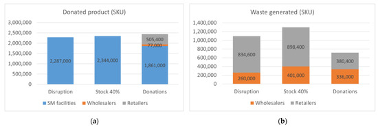 Supply chain sustainability metrics: (a) pharmaceutics donated (in SKU); (b) waste generated in the supply chain (in SKU).