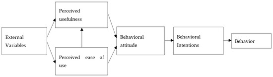 The model is widely recognized for its clear structure of elements, simplicity of questions, and analytical and predictive power (Figure 1). The model contains five key elements: perceived usefulness, perceived ease of use, user behavior, attitude toward use, and behavioral intention, where the perceived usefulness and perceived ease of use are influenced by external factors [34]. Usage behavior is determined by usage behavior and behavioral intention is determined by usage attitude. In 2003, Venkatesh and Davis extended the model to include elements such as behavioral norms, performance assessments, and competence expectations, and they valued indirect effects of moderators such as personality, age, and experience. Using the educational acceptance model as a theoretical basis, this study analyzes the factors associated with the developmental improvement of online education colleges, and it aims to provide a reference for the improvement of the online mentoring model.