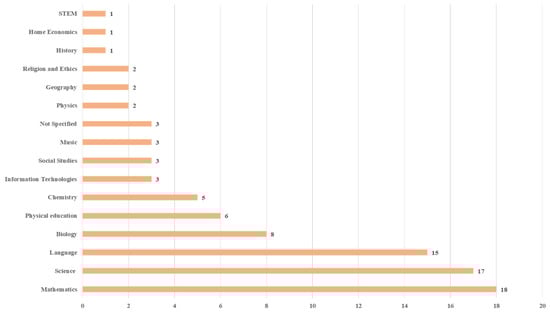 Codes for the teaching content included Science, Mathematics, Languages, Biology, Chemistry, STEM, Physical Education, Music, History, Geography, Information Technologies and Software, Social Studies, Home Economics, and Religion and Ethics.