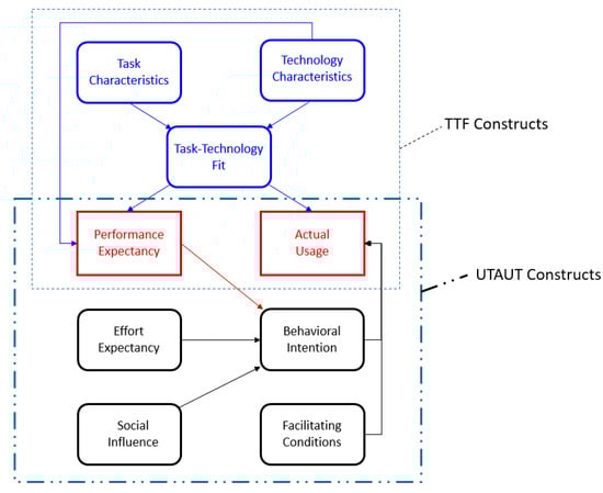 Integration of TTF and UTAUT for technical sustainability exploration.