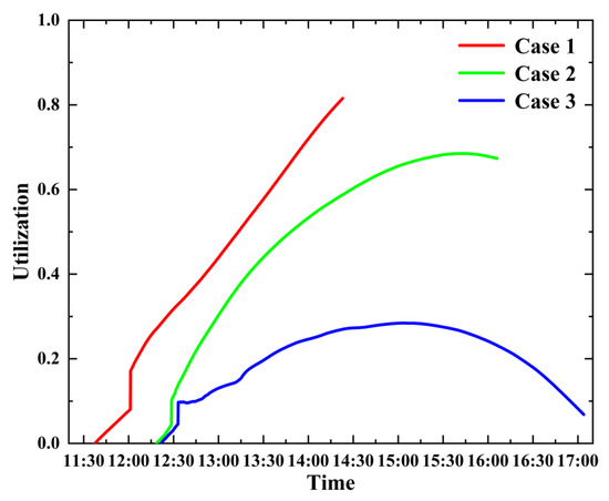 - Increasing the discharging flow rate will increase the whole charging and discharging time, thicken the thermocline, and disturb the temperature field in the tank, but considering the demand of heat release that should be met, there must exist a ‘perfect flow rate’ that can make the discharging efficiency and utilization rate obtain the maximum values, and make the condition of case 2 closer to the ‘perfect flow rate’.