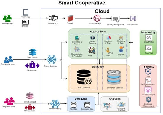 The infrastructure and technology layer consists of important technologies such as transmission control protocol/internet protocol (TCP/IP), wireless networks, the Internet of Things (IoT), cloud computing, blockchain, big data, application programming interface (API), artificial intelligence (AI), virtual private networks (VPNs), and robotic process automation (RPA). This layer facilitates all layers that enable efficiency and governance in co-operative management [33].