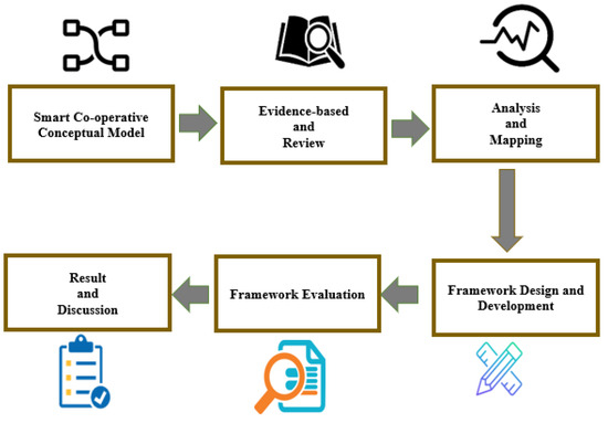 Therefore, the research question is, “What are the components of an enterprise architecture for smart co-operative management?” This research question led to the development of a conceptual framework for smart co-operative management. An expert panel is expected to evaluate the framework using a quantitative evaluation method to ensure the framework’s content validity. We conducted the research protocol without technological bias and universal implications. These experts determined the framework’s completeness and business–IT alignment. In the Introduction, we thoroughly discussed the smart co-operative framework for sustainable development, which focuses on five layers: infrastructure and technology, data and information, applications, business, and governance. In the Literature Review and Methodology sections, we discuss how the data were collected using a semi-structured questionnaire to determine what makes a smart co-operative able to quantify expert opinions and how the content validity index (CVI) was used to ensure the framework fit. The Results, Discussion, and Conclusion sections present the framework for smart co-operatives, designed to enable all sizes and sorts.