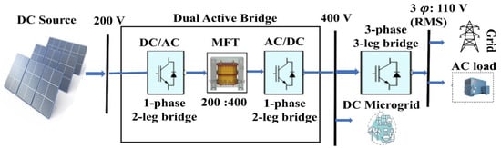 - Qin, H.; Kimball, J.W. Closed-loop control of DC-DC dual active bridge converters driving single-phase inverters. In Proceedings of the 2012 IEEE Energy Conversion Congress and Exposition (ECCE), Raleigh, NC, USA, 15–20 September 2012; pp. 173–179. [Google Scholar]