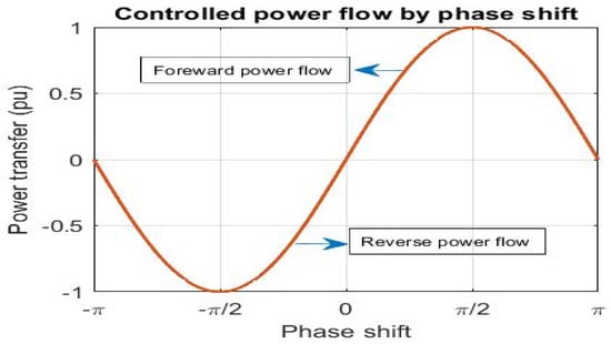 This equation expresses the amount of the power delivered from the leading bridge to the lagging bridge as a function of the phase shift, as shown in Figure 5. For a reverse power flow situation, the power transferred is given as [29]
