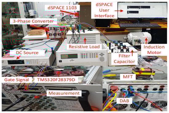 - Experimental setup (medium-voltage prototype) of the proposed two-stage SST was developed for testing and validation of the simulated control techniques.