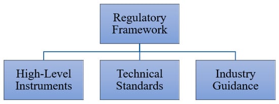 The regulatory framework has been divided into High-Level Instruments, Technical Standards, and Industry Guidance (Figure 1).