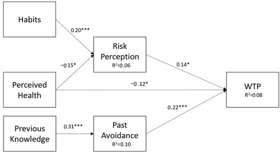 As shown in Figure 3, all hypotheses are confirmed, and therefore all six alternative hypotheses are accepted. Finally, the path model explains the following proportion of variance of the three endogenous variables, i.e., “Risk Perception”, “Past Avoidance”, and “Willingness to pay” (6%, 10%, and 8% of the accounted variance, respectively).