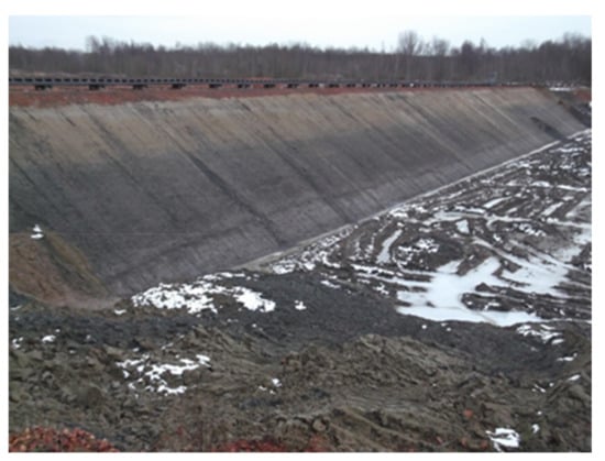 In the majority of mining projects, orebodies are located under an overburden of soil or rock (so called ‘overburden’) that must be removed or excavated to allow access to the deposit. Most mining projects, such as for metallic minerals, coal, or industrial minerals, have to face a huge quantity of overburden. The ratio of the quantity of overburden to the quantity of mineral ore (so called ‘strip ratio’) is usually greater than one and can be much higher. In open pit mining operations, the removal of overburden usually leads to the formation of pits that can be partially filled by resurgent groundwater. Overburden or waste rock during open pit mining requires stable and safe disposal, both before and during the exploitation and after the end of the operations for convenient reclamation. This activity is always relevant, in terms of planning, equipment selection, design of dumps, ponds, covering layers, drainage, reinforcing works, and eventual environmental remediation. In some cases, the overburden or the residual processed material (after selection) can be disposed of in the exhausted quarry pits [7,8], where interference with groundwater can happen.
