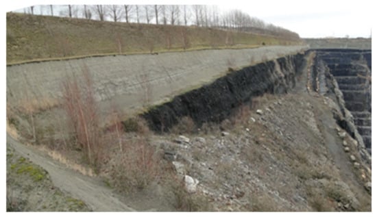 - Tshibangu, J.-P.; Deloge, K.P.-A.; Deschamps, B.; Coudyzer, C. Assessment of Rock Slope Stability in Limestone Quarries in the Tournai’s Region (Belgium) Using Structural Data. In Engineering Geology for Infrastructure Planning in Europe: A European Perspective; Springer: Berlin/Heidelberg, Germany, 2004; pp. 604–613. [Google Scholar]