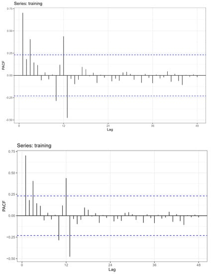 Furthermore, many entrepreneurs still prefer analytical time series models [1,11]. Moreover, the effectiveness of the developed learning algorithms is often ultimately compared with analytical ones anyway, which leads to the conclusion that the accuracy of deep learning methods is not statistically significantly better than that of regression [30,43], moving average [7,44], naive [45,46], autoregressive, as well as ARMA [47], ARIMA [9], SARIMA [47,48] models or the Poisson process [49,50]. Meanwhile, as the authors point out, analytical models are easier to configure and parameterize [45] and, above all, more readable in terms of interpreting individual parameters and assessing their impact on the dependent variable [51]. The authors also contend that the forecasting system should be stable [28], hence simpler forecasting methods and procedures are preferred to avoid issues with estimating and verifying the parameters.