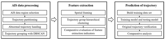 Compared with several existing methods, in order to make up for the AIS data collection system’s dense defects at a certain point caused by the uneven collection times during data collection, solve the traditional feature extraction methods’ high sensitivity at the trajectory dense point, and make up for the defects in the prediction accuracy of the multi-trajectory prediction model, in this study, we proposed a multi-trajectory hierarchical clustering method and a multi-trajectory prediction framework based on an attention mechanism. The key idea was found through AIS data visualization that the inbound and outbound trajectories have obvious grouping characteristics. On this basis, it was proposed that intra-group features should be extracted and the motion mode of similar trajectories at the same position when the trajectory points merged should be considered. Therefore, the features of each trajectory are not only affected by its own trajectory points, but also by the trajectory points of similar trajectories. To a certain extent, the sensitivity of the trajectory density points was eliminated. The input weight was calculated through the attention mechanism model to improve the accuracy of the multi-trajectory prediction. The comprehensive evaluation of the case study shows that the proposed feature extraction method was more similar to the original trajectory, the trajectory shape was better restored, and the proposed prediction model achieved satisfactory prediction accuracy. However, the proposed feature extraction method and prediction model still have defects in similarity and accuracy in the regions with more turns. In future research work, the feature extraction and prediction of multi-steering regions need further study.