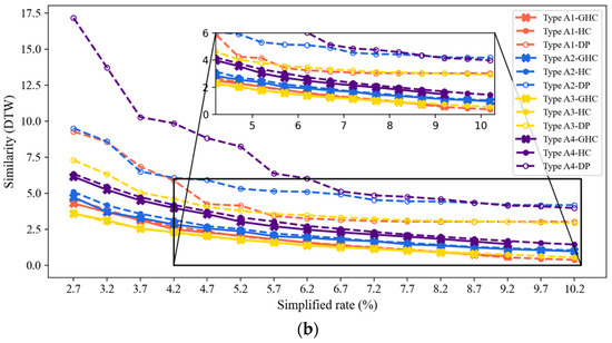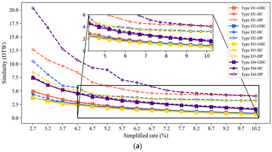 The DP algorithm is a classic approach for the thinning of linear elements, which can handle a large number of aggregate data points in order to simplify the data volume [16]. At present, the DP algorithm has extensive application in ship trajectory compression and feature extraction. The core idea of the DP algorithm is to connect the starting and ending points of the curve and then determine the maximum vertical distance of the middle point to the connecting line, compared with a threshold value that has been set [17]. If it is larger than the threshold, it is divided into two segments and calculated again; if it is smaller than the threshold, the intermediate point is deleted to complete the feature extraction. See Appendix A and Figure A1 for detailed steps of the calculation and charts.