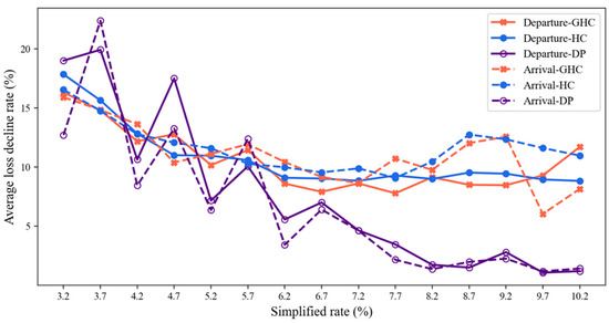 In the experiments, MAE and RMSE were used to measure the performance of the proposed model, and we compared the features proposed by the GHC algorithm with those extracted by hierarchical clustering (HC) and Douglas–Peucker (DP) algorithms. The average similarity between our features and the original features was 2.267. Under the same conditions, the GHC algorithm was 3.74% better than the HC algorithm and 60.12% better than the DP algorithm. In the second part of the experiment, we studied the feature extraction based on GHC to train the trajectory prediction model. First, the experiment compared the advantages of the attention mechanism model in the feature prediction. The MAE of the longitude and latitude of the departure trajectory were 0.0198 and 0.0173, respectively, which were 8.65%, 16.26%, 15.48%, 19.58%, 6.82%,17.07%, 13.35% and 22.56% lower than the LSTM-NN, GRU-NN, bidirectional long and short term memory neural network (BiLSTM-NN) and bidirectional gate recurrent unit neural network (BiGRU-NN), respectively. The MAE of the longitude and latitude of the arrival trajectory were 0.00898 and 0.00673, respectively, which were 52.60%, 63.84%, 53.07%, 62.71%, 38.95%, 56.89%, 47.36% and 58.93% lower than LSTM-NN, GRU-NN, BiLSTM-NN and BiGRU-NN, respectively. This study also compared the effects of different feature extraction results on model training and found that the features extracted using the GHC algorithm were the best among different models.