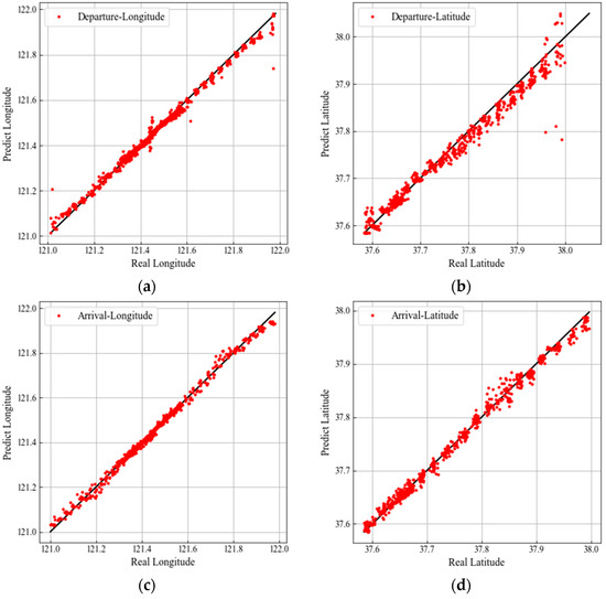 Over the years, ships have become larger and more diversified, and the number of ships has also increased. This brings potential safety hazards to the navigation of ships [1]. According to a report on the causes of collisions, 95% are caused by humans [2]. It is insufficient for officers to rely solely on navigational information from the electronic chart display, information system (ECDIS), and automatic identification system (AIS) equipped on ships to assist in decision-making. The prediction of ship trajectory can provide correct auxiliary decision support for pilots. Therefore, accurate ship trajectory prediction is necessary for a ship navigation system to reduce the risk of ship accidents. Trajectory prediction is extensively studied in the field of ships. The models adopted can be divided into those using traditional methods and using machine learning. In traditional methods, the modeling of a ship’s motion process is conducted through one or more sets of mathematical kinematic equations, taking all possible influencing factors (such as mass, force, inertia, yaw, and rate) into account and using physical laws to model and calculate the ship’s motion characteristics. Best et al. proposed a ship curve model integrating linear motion, circular motion, and parabolic motion that can accurately describe a ship’s motion characteristics [3]. Inoue et al. used a ship hydrodynamic model to predict ship trajectory, which can calculate ship movement according to actual ship data, such as hull, rudder, propulsion system, ocean current speed, and major details of wind [4]. In modeling that uses machine learning, it includes Kalman filtering (KF), support vector regression (SVR), artificial neural network (ANN), etc. Liu et al. took the longitude and latitude, course, and speed from ship historical trajectory data as sample features and proposed a trajectory prediction model based on SVR [5]. Because an ANN benefits the learning of complex relationships, it can be used to learn complex space–time relationships among variables [6]. Gan et al. first used a K-means clustering algorithm to group ship historical trajectory and then used the grouping results to build an ANN model to predict ship trajectory [7].