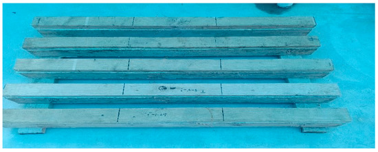 The main parameters for the design of the steel–wood composite beam included the top board thickness, the flange thickness of the added steel, and the steel type on the failure form, bending stiffness, and bending bearing capacity. The values for the thickness of the upper flange-covered board in the steel section were 30 mm, 40 mm, and 50 mm. The thickness of the welded thin-walled H-shape steel flange was considered 1.5 mm, 2 mm, and 2.5 mm. Table 1 represents the parameters including the dimension of specific components.