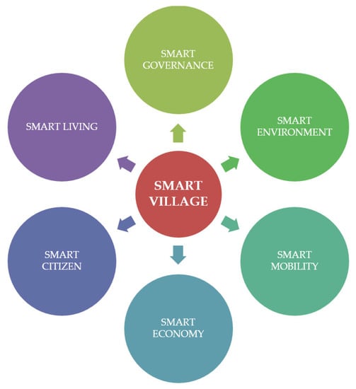 Smart villages (SVs) are made up of rural communities who seek innovative and practical solutions to the challenges they face and who adapt quickly to opportunities for rural transformation ([2], pp. 9–12). The construction of smart villages must be developed in harmony with environmental protection and the sociocultural and economic needs of the community, and it must be integrated into the regional development strategy [8]. SVs aim for an inclusive development, following all the objectives of the European Green Pact [9].