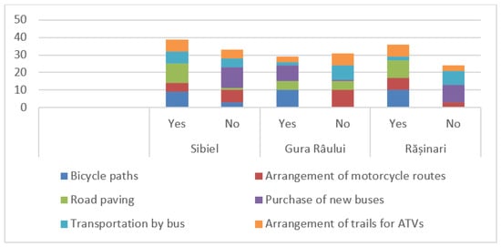 According to the respondents’ perception, the main measures that local public authorities should take to improve transport accessibility differ according to the locality (Figure 4).