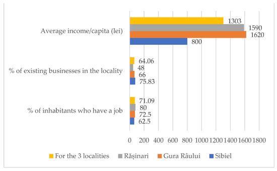 From the total of 93 tourist accommodation structures registered in the three localities, 67 (72%) are rural tourist hostels. The total accommodation capacity of the 93 tourist structures is 654 rooms and 1330 places. It should be noted that 50 of them (53.80%) are in the three-star/daisies comfort category and only around 14% in the higher-comfort categories. According to the data provided by the National Institute of Statistics, the net utilization index of the tourist accommodation capacity in operation in Sibiu County in August 2022 was 31.7% in the case of tourist guesthouses and 30.5% in the case of agritourism guesthouses, compared to 19.9% and 17.1%, respectively, nationally [60]. The numbers of tourist arrivals in 2022 in the three localities were 5789 (Rășinari), 7732 (Gura Răului), and 14,306 (Sibiel) [61], and the numbers of overnight stays were 11,414 (Rășinari), 14,627 (Gura Răului), and 23,487 (Sibiel) [62].