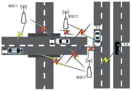 Vehicle speed in this scenario is constantly unidirectional, represented by which, as displayed through (vehicle mobility), facilitates the distance from vehicle to RSU coverage area center along with time; thus, variation law is as shown: