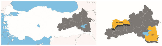 For the analysis, a survey was conducted with a total of 300 beekeeping enterprises in the province of Van, located in the Southeast of the Eastern Anatolia region of Türkiye, and Erzincan, located in the West, in the production season of 2020 (Figure 1).