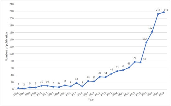 To improve the guidance of IVR research in the field of education, the study used the Web of Science Core Collection of SSCI literature as the search database. The search topic was set to topic = “Immersive Learning” or “Virtual Reality Learning Environment”. The language set to “English” and the document types to “Article” were browsed on Web of Science and 1293 documents were retrieved (search date: 10 February 2023). At last, we exported the data to Refworks format with the contents of the “Full Record and Cited References” record. According to the available SSCI literature, research related to learning in immersive virtual reality environments began in 1996 (Pauline A. Smith, 1996), so the years 1996–2022 were selected for this study, and each article contained information such as author, institutional keywords, abstract, and publication date.