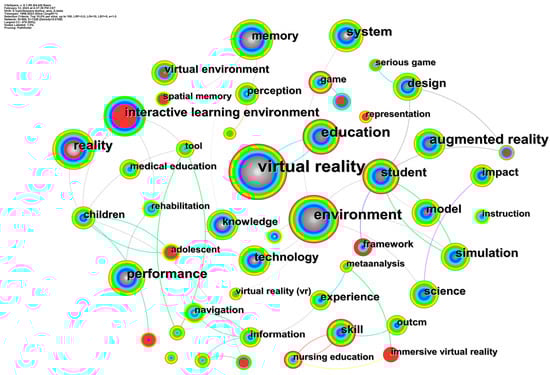 Stage 2 (2009–2016): The number of studies has grown steadily, the average number of publications per year during these eight years was 40.50, mainly concentrated in the United States. According to Hsiu-Mei Huang [15], animation and multimedia in learning has been extended to applications in virtual reality learning environments. This is from the traditional single-style multimedia teaching to a more immersive and interesting virtual reality learning environment. Veljko Potkonjak [16] (2016) first proposed the creation of virtual laboratories for science, technology, and engineering education, especially for application in online distance learning. This stage of rapid development is pivotal in the application of immersive virtual reality in education and laid the foundation for future wisdom teaching.