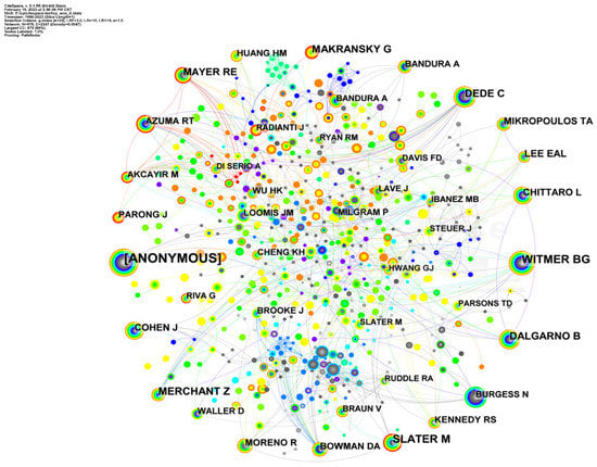 Cooperation map of immersive virtual reality technology in education from 1996 to 2022.