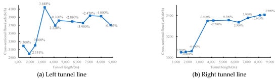 - As the slope increases, the capacity of the tunnel road decreases. When the longitudinal slope reaches 3%, the road capacity decreases significantly as the slope increases.