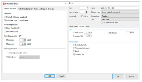 VISSIM uses the physiological–psychological driving behavior model established by Wiedemann. The basic idea of the model is that the driver of a vehicle traveling at a faster speed perceives a slower vehicle in front of them and starts to decelerate and reaches the desired speed limit to follow the driver because the driver of the car behind cannot accurately judge the speed of the car in front, so their speed will be lower than the speed of the car in front, which triggers them to take accelerating measures to a certain extent until they reach the desired value again. Thus, the iterative process of acceleration and deceleration is repeated.