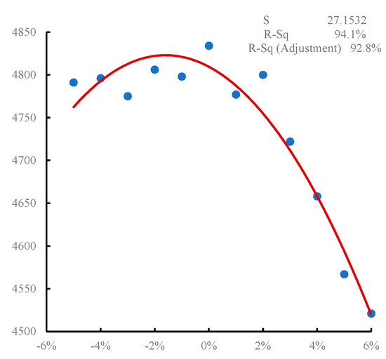 The misfit term test was used to determine whether the regression model is acceptable for the goodness-of-fit test for the affordability model established in this paper. The misfit test’s key parameters are DF (degrees of freedom), SS (different sums of squared errors), MS (mean square of different errors), F (chi-square test), and p-value (significance).