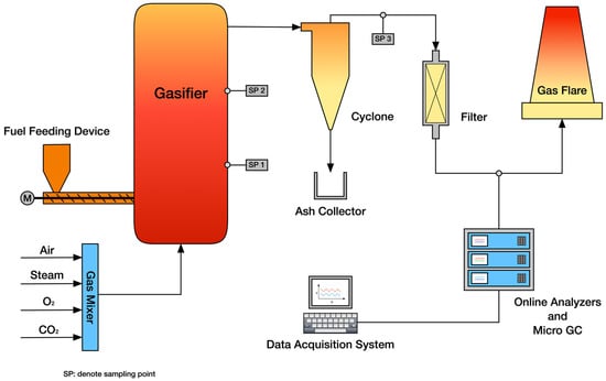 Schematic illustration of the lab-scale fluidized bed gasification apparatus.