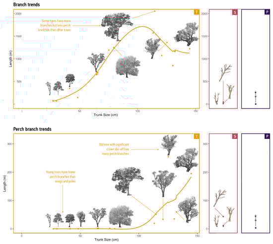 To model the use of habitat features, we focused on the availability of perch sites for birds. These sites are branches that birds visit for nesting, foraging, and observation. We focused on such branches because many birds, including Passerines, spend most of their lives perched in larger and older trees [58]. As discussed in the introduction, complex branch patterns are difficult to quantify without high-fidelity data and computational analysis [21,59].