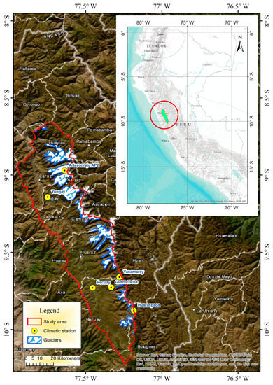 31. Baraer, M.; Mark, B.G.; Mckenzie, J.M.; Condom, T.; Bury, J.; Huh, K.I.; Portocarrero, C.; Gómez, J.; Rathay, S. Glacier Recession and Water Resources in Peru’s Cordillera Blanca. J. Glaciol. 2012, 58, 134–150. [Google Scholar] [CrossRef]