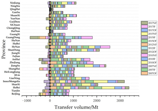 3. Temporal and Spatial Evolutionary Trend of Carbon Transfer among Provinces
