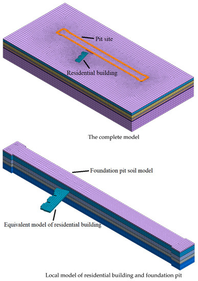In recent years, with the rapid development of China’s economy and the accelerating process of urbanization, the scale and population of cities have increased greatly, resulting in the decreasing of ground space resources. Therefore, the construction and research of urban underground space has gradually attracted the attention of civil engineering constructors and scientists [1,2,3,4]. Foundation pit excavation is an important part of underground engineering construction. However, with the increasing excavation depth and excavation scope of foundation pit, it will inevitably affect the stability and safety of adjacent buildings [5,6]. Therefore, it is particularly necessary to study the influence of deep foundation pit excavation on the deformation and structural safety of adjacent buildings.