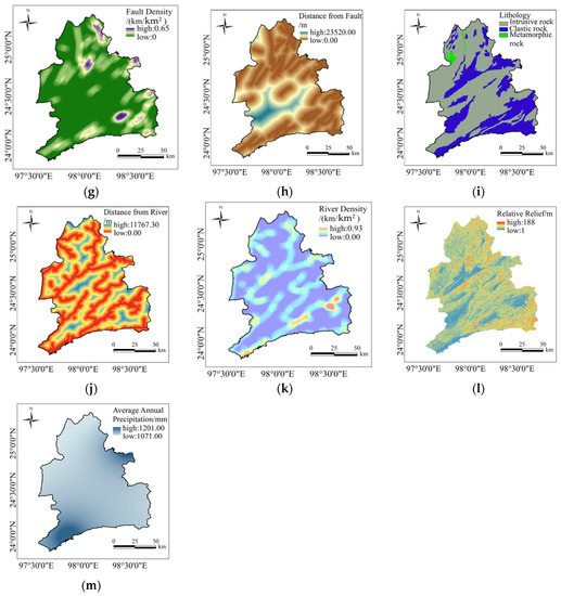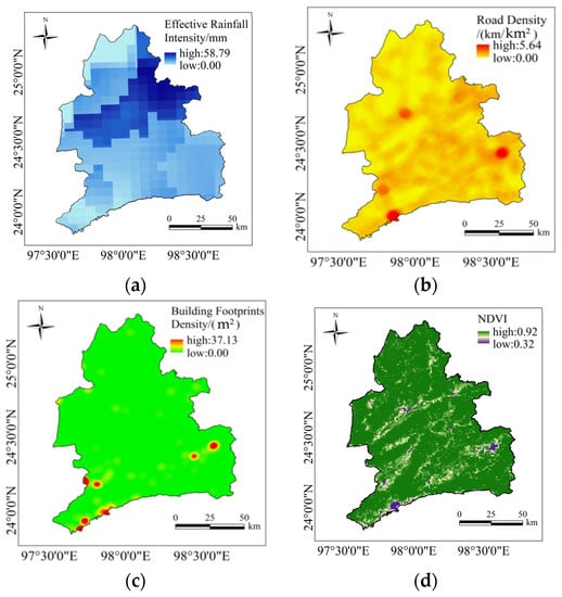 - There is a certain deficiency in responding to human activity based on information such as road distribution, land cover, and building footprint, and it is necessary to additionally consider data types that are strongly correlated with human activity, such as slope cutting and dynamic population distribution. Although different data can be processed at the same spatial and temporal resolution to participate in the modeling, data completeness is a particularly important limitation; for example, the inconsistent update interval from days to years for different trigger factors means that there may be a lag in the trigger factors considered in the hazard assessment. The inconsistent level of granularity of the data will affect the assessment results. Next, we will focus on data governance for more accurate and real–time assessment results.
